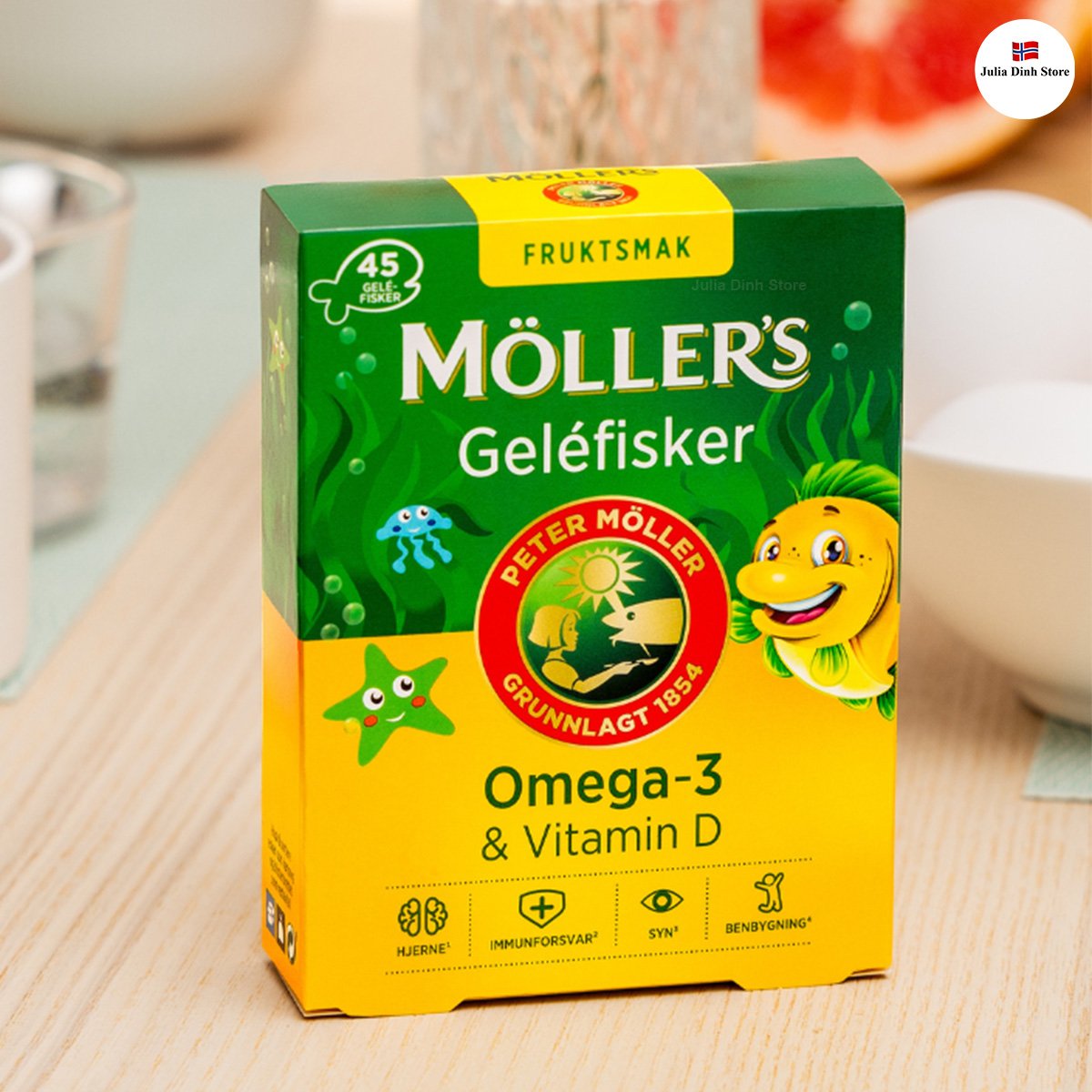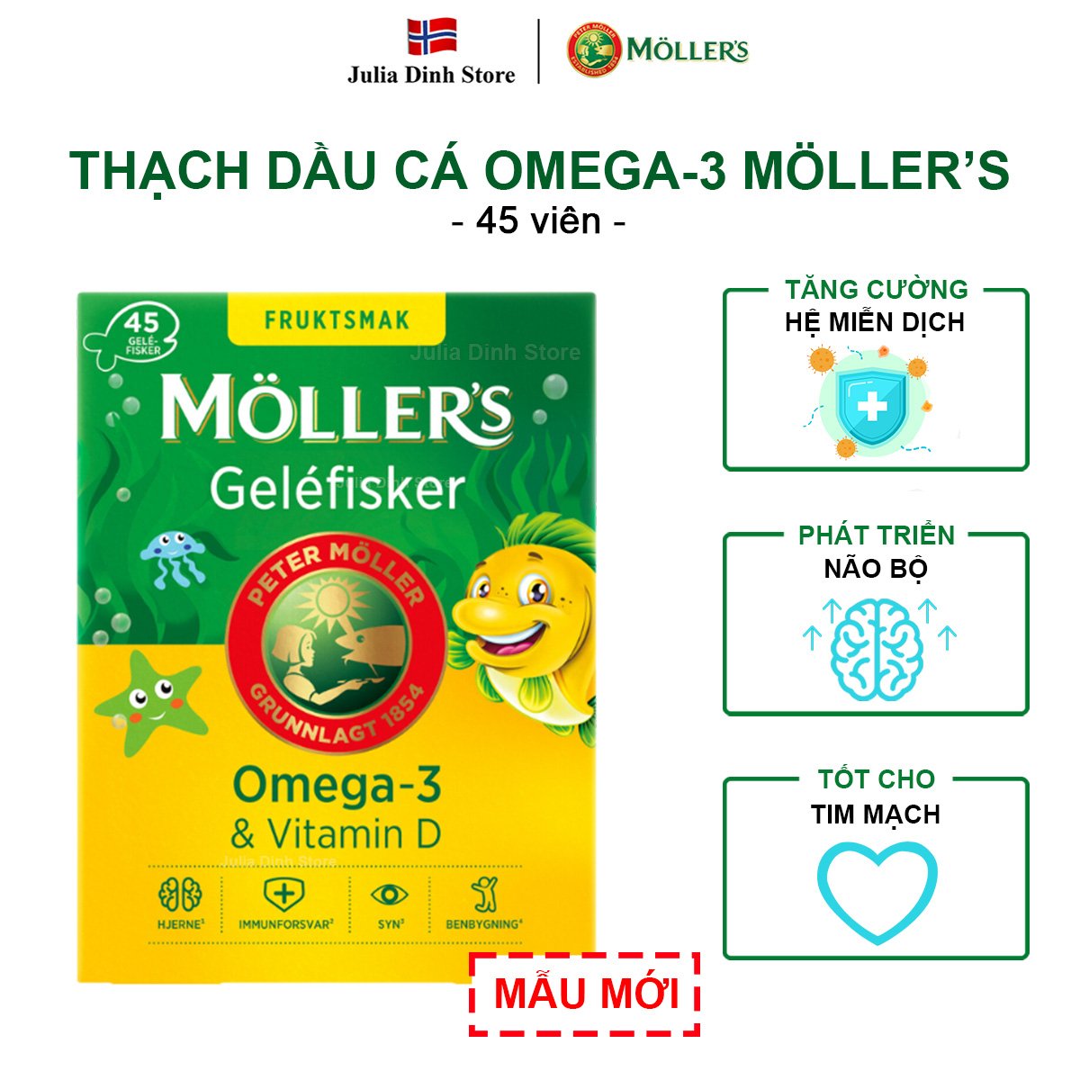 Thạch dầu cá Mollers bổ sung Omega 3 hương vị trái cây. Giúp trẻ phát triển não và sáng mắt kèm vitamin D giúp xương chắc khỏe, tăng cường hệ miễn dịch phòng ngừa ốm vặt.